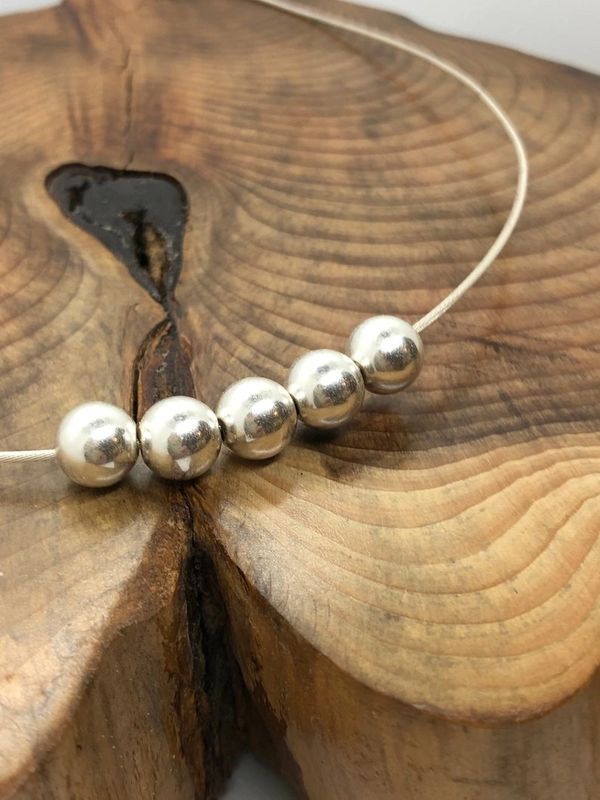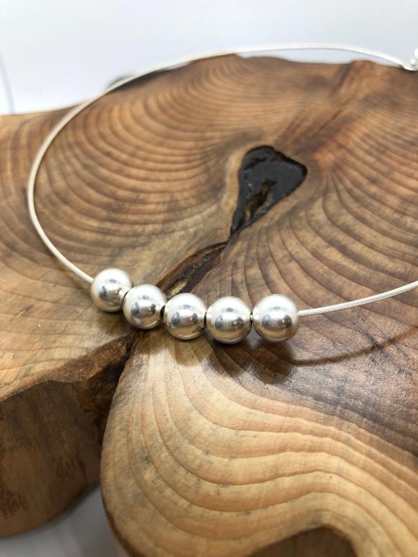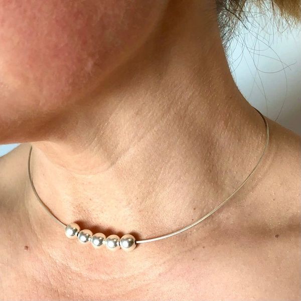 The silver balls are hollow so they are light enough to wear all day. The necklace sits snuggly around the throat with the beads sitting in the nape of the neck. Perfect with a T-shirt or in the neckline of a shirt. These really would look great with anything!